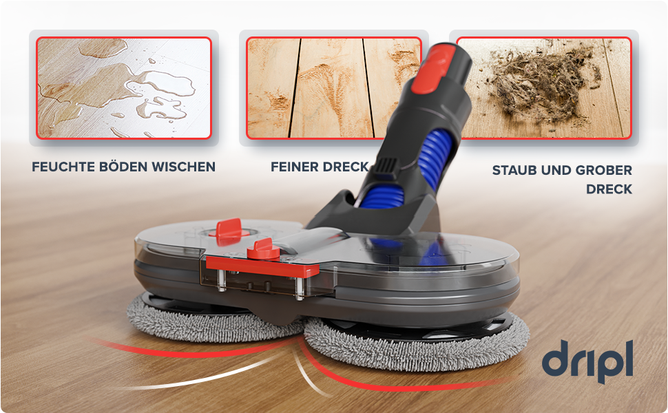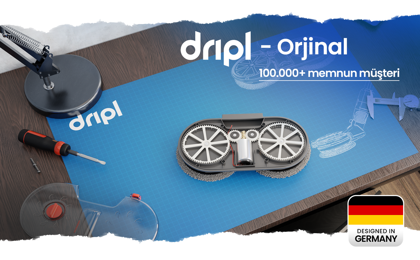 Mop aparatı için ideal olan temizlik maddesini Dripl'in online mağazasından satın alabilirsiniz. Diğer zemin temizleme ürünlerini de kullanabilirsiniz.